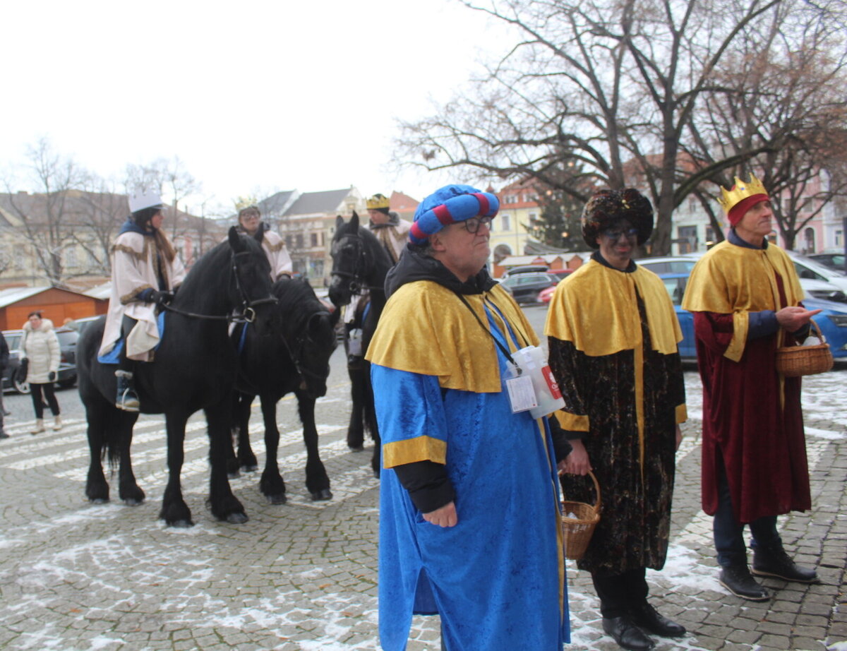 „My tři králové jdeme k vám, štěstí zdraví vinšujem vám,“ ozývá se náměstím. Zatímco v sedlech valacha Tobbyho a klisen Belly a Anny jsou zkušené jezdkyně z ranče Nevada na Smraďavce, odkud koníci přijeli, před nimi kráčejí ve zbrusu nových kostýmech coby tři mudrci z Východu, ředitel Charity Uherské Hradiště Jiří Jakeš, jeho zástupce Dalibor Jirásek a jáhen Jan Krajsa. „Nové kostýmy včetně turbanů jsou z rukou naší kolegyně a návrhářky v jedné osobě Jitky Raclavské,“ upřesňuje Dalibor Jirásek.
