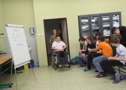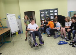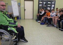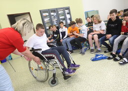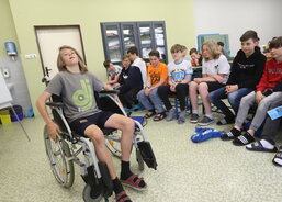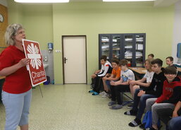 Kompletní činnost Charity Uherské Hradiště v kostce představila žákům sedmých ročníků Jarmila Vráblová z Centra osobní asistence. „Po školách už takto přednášíme šest až sedm let. Dnes je to naše první přednáška po covidu. Děti byly výborné. Měly zájem a ptaly se. Díky tomu, že mne na vozíčku doprovázel náš bývalý klient Tomáš Fila, zajímaly se hodně i o technické věci, které se dotýkají právě vozíčkářů,“ říká sociální pracovnice Jarmila Vráblová.